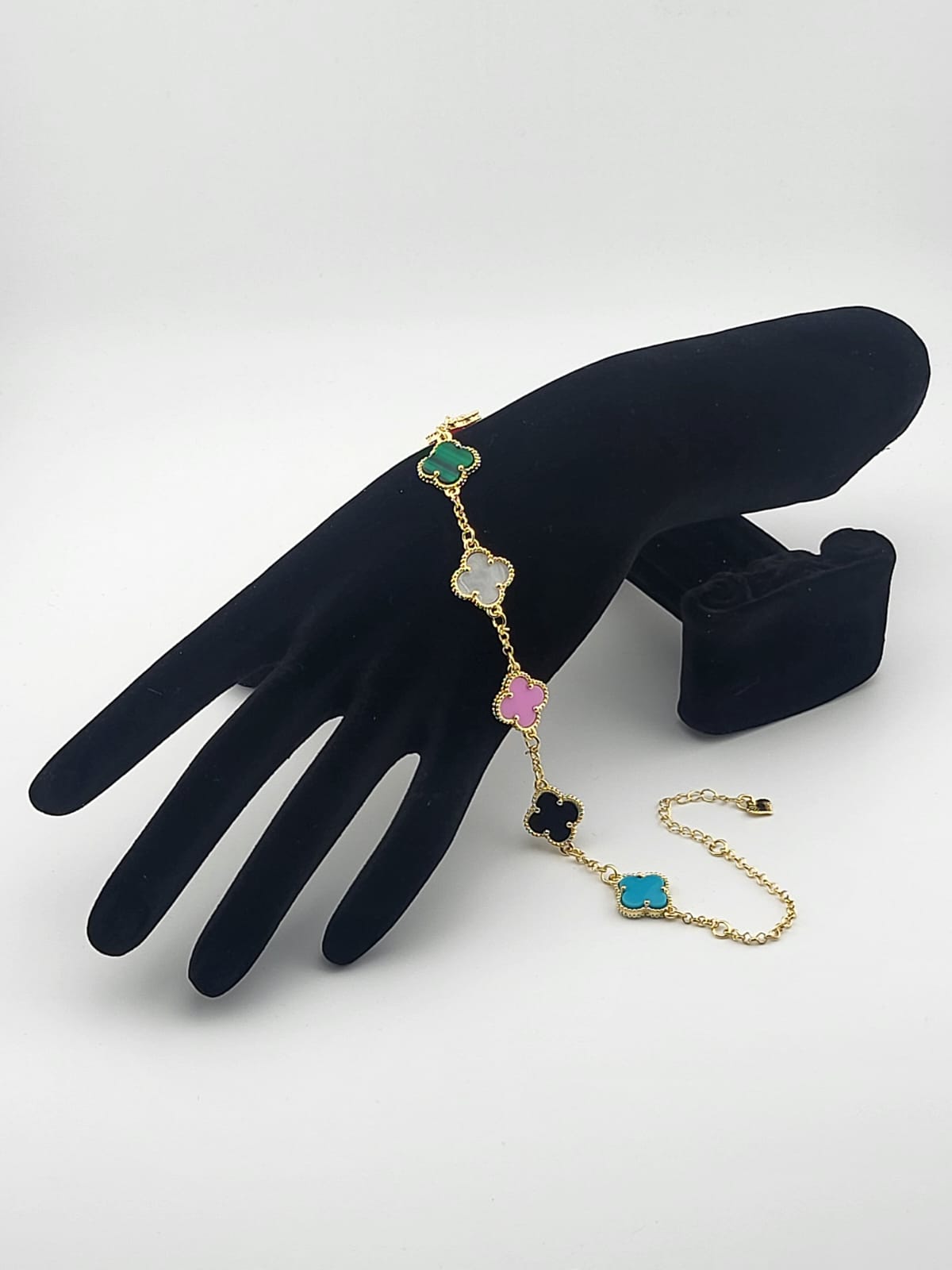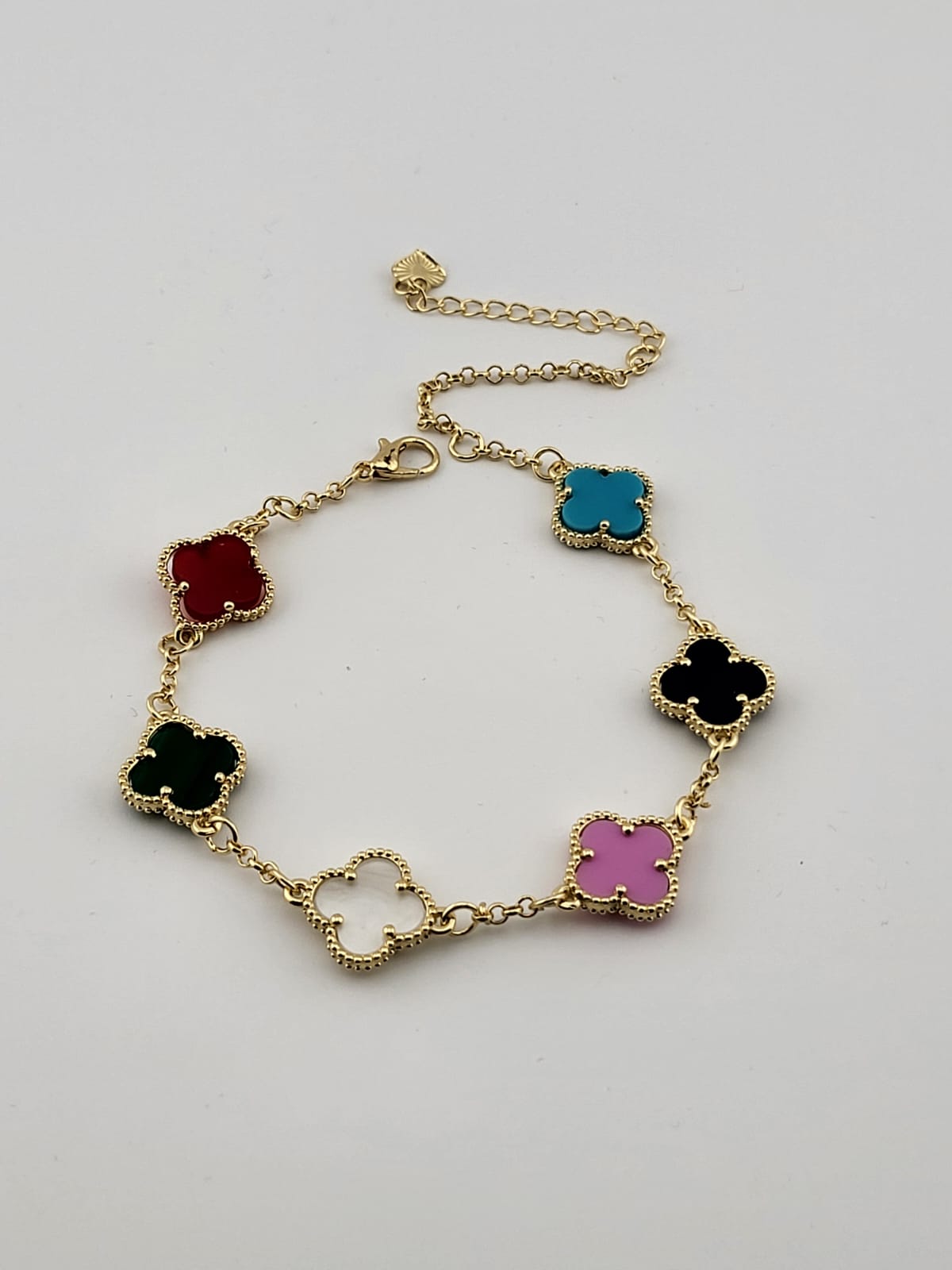 Introducing our “Colorful Clover Charm Bracelet,” a vibrant and whimsical accessory that adds a touch of playful elegance to any ensemble. Crafted with care and attention to detail, this bracelet features charming clover-shaped charms adorned with an array of vibrant colors. Each clover charm symbolizes luck and good fortune, while the colorful palette adds a joyful and energetic vibe to the design. Whether worn as a symbol of positivity or as a stylish accent piece, this bracelet is sure to brighten your day and inspire smiles wherever you go.