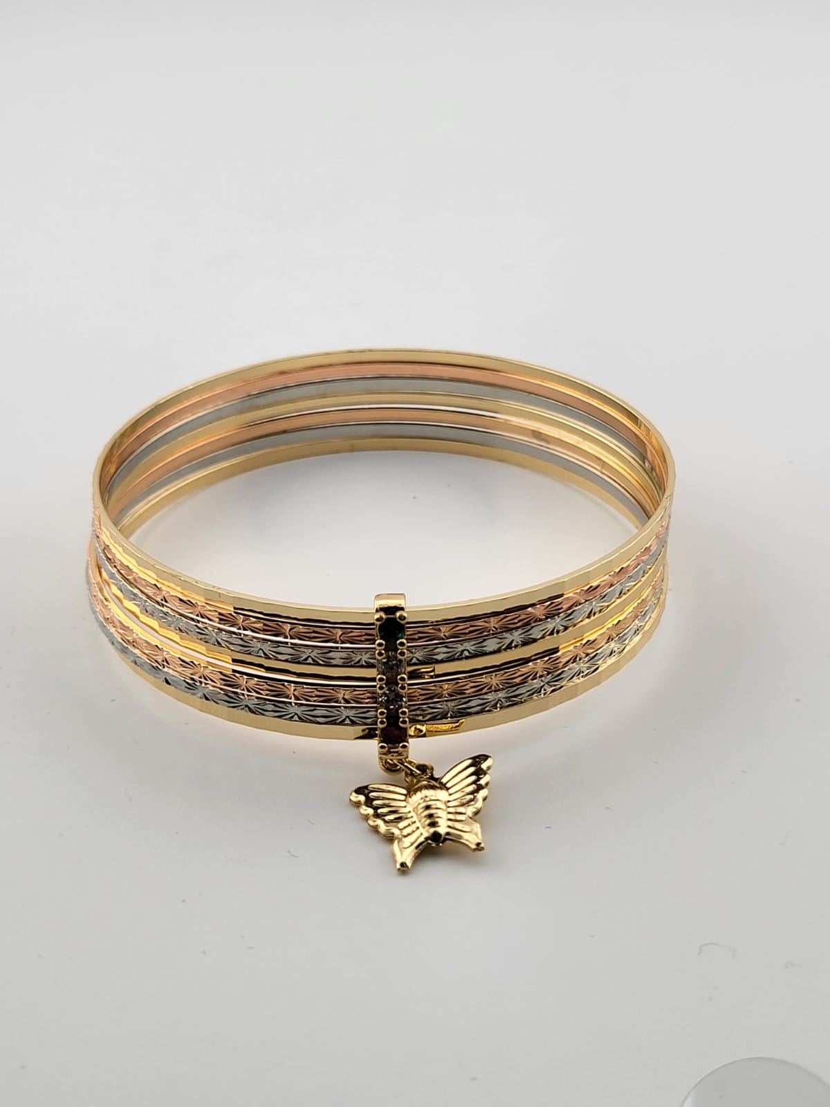 Fluttering Butterfly Tricolor Bangle Bracelet