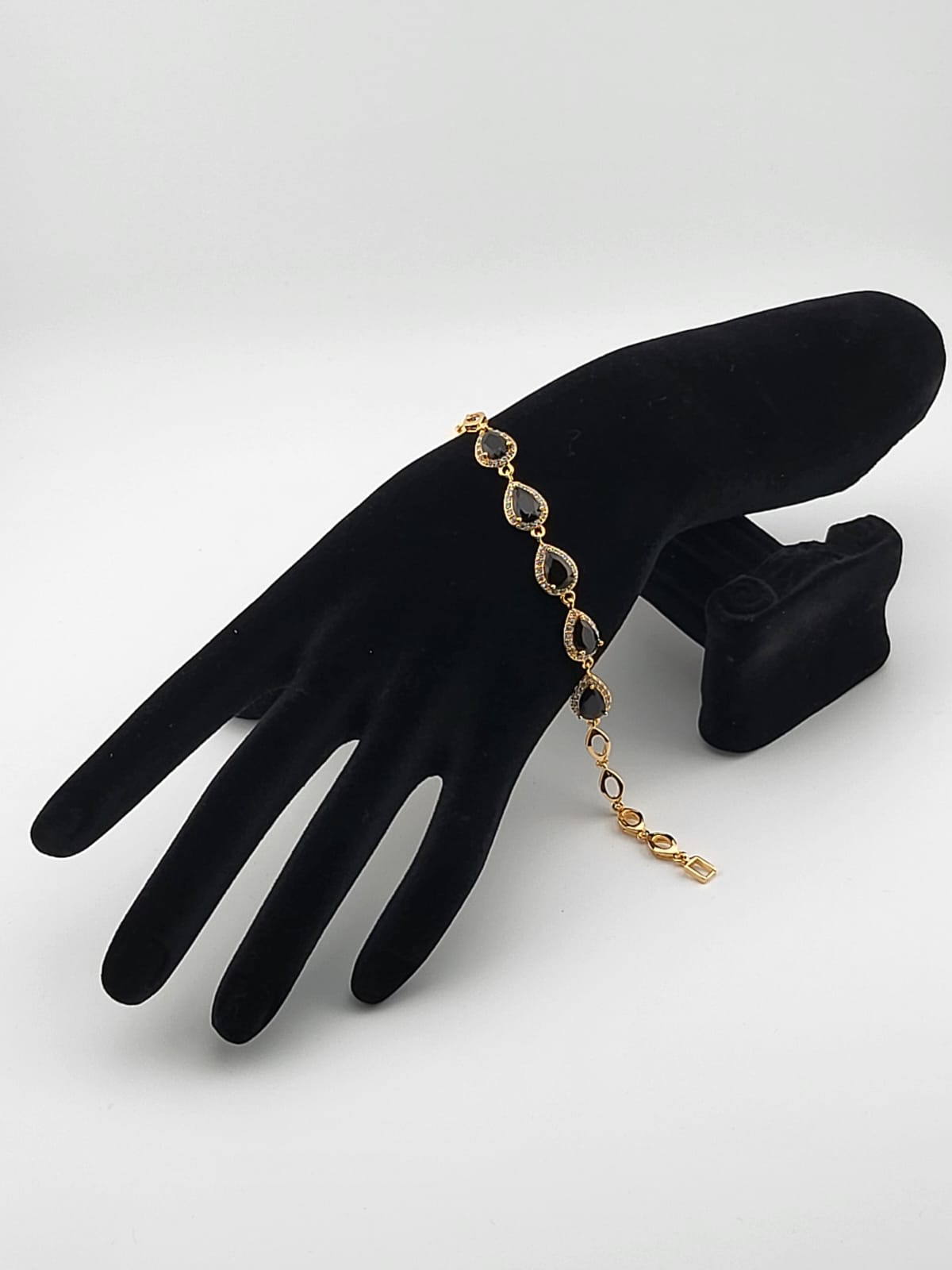 Introducing our “Midnight Elegance Droplet Bracelet,” a striking and sophisticated accessory designed to captivate with its timeless beauty. Crafted with care and precision, this bracelet features sleek black droplets that dangle delicately from the chain, creating a mesmerizing effect reminiscent of a starry night sky. The rich black color exudes an air of mystery and allure, while the elegant design adds a touch of refinement to any ensemble. Whether worn as a standalone statement piece or paired with other bracelets for a layered look, this bracelet is sure to turn heads and elevate your style with its understated elegance.