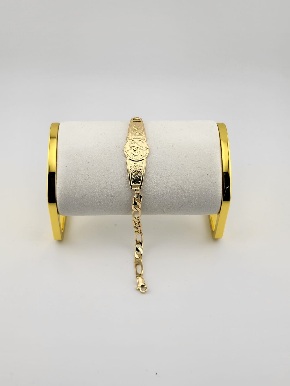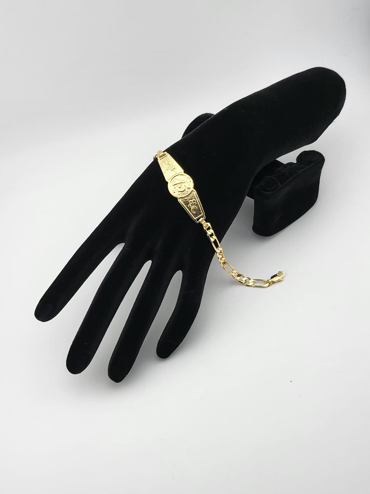 Introducing our “Quinceañera Elegance Figaro Chain Bracelet,” a timeless and elegant accessory crafted to commemorate the special milestone of a young woman’s fifteenth birthday. This bracelet features a beautifully engraved plate adorned with the words “Quinceañera,” symbolizing the significance of this cherished occasion. Paired with a classic Figaro chain, this bracelet exudes sophistication and grace, making it the perfect accessory for the quinceañera celebration. Whether worn as a personal keepsake or gifted to a loved one, let this bracelet be a symbol of enduring memories and cherished traditions.