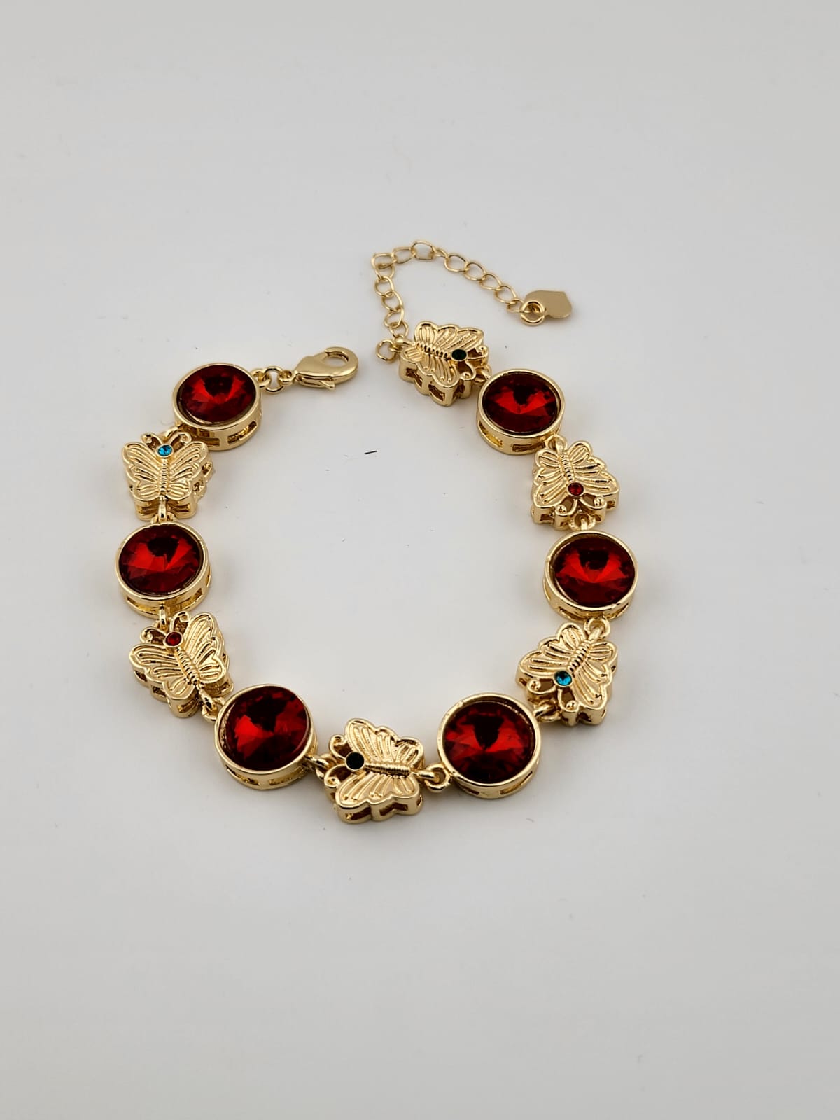 Introducing our “Scarlet Wings Butterfly Bracelet,” a captivating embodiment of elegance and passion. Each delicate red heart-shaped charm dances alongside graceful butterfly motifs, creating a symphony of beauty and charm. The vivid scarlet hues evoke feelings of love, vitality, and daring, while the intricate design adds a touch of enchantment. Crafted with precision and care, this bracelet is a symbol of transformation and heartfelt emotion. Whether worn as a reminder of life’s vibrant joys or as a striking accessory for any occasion, let this bracelet inspire you to embrace your passions and spread your wings towards new horizons.