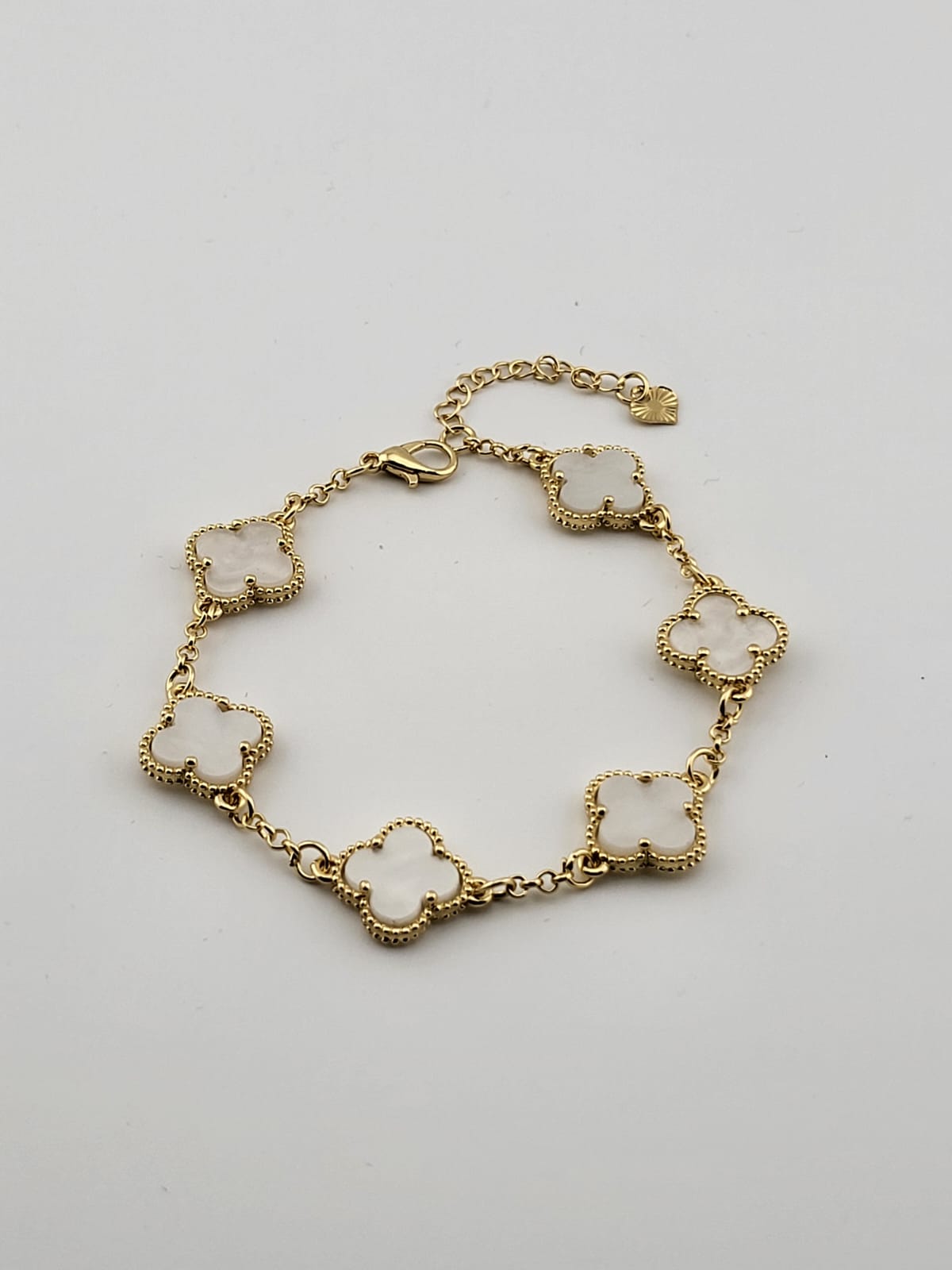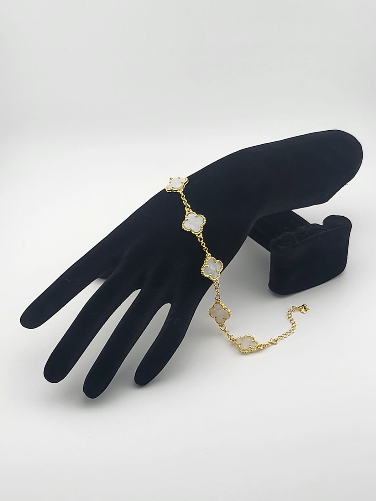 Introducing our “Snowy Clover Charm Bracelet,” an enchanting and elegant accessory designed to captivate with its timeless beauty. Crafted with delicate precision, this bracelet features charming clover-shaped charms adorned in pristine white. Each clover symbolizes luck and purity, creating an aura of positivity and grace. The snowy white hue adds a touch of sophistication and refinement to the design, making it a versatile and timeless piece suitable for any occasion. Whether worn as a symbol of elegance or as a chic accent to your ensemble, let this bracelet be a beacon of style and charm, illuminating your look with its radiant allure.